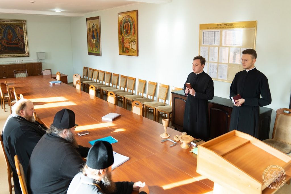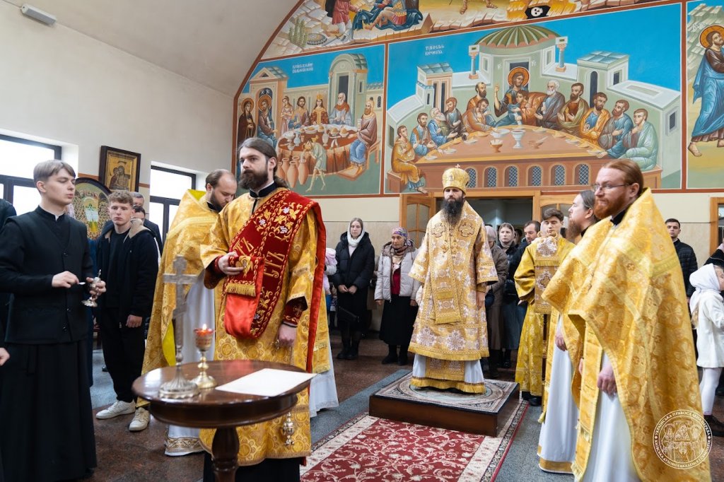 Богослужіння звершив проректор з навчально-методичної роботи єпископ Батуринський Пантелеімон у співслужінні академічного духовенства та студентів КДАіС у священному сані
