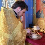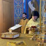 В Академічному храмі на честь Різдва Божої Матері богослужіння очолив викладач ієромонах Афанасій (Стрельцов) у співслужінні кліриків храму.