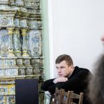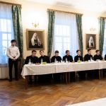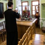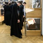 Після екскурсії відбувся обід, на якому зі студентами зустрівся благочинний Лаври ієромонах Агафон. Він розповів про сучасне чернече життя в Лаврі. Після завершення зустрічі отець благочинний подарував гостям з Києва пам’ятні подарунки.