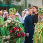 Під час бдіння керуючий справами УПЦ митрополит Бориспільський і Броварський Антоній, вікарні архієреї та благочинні Київської єпархії привітали Його Блаженство з Днем Ангела та подарували букет квітів.