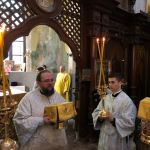 В Академічному храмі Божественну літургію очолив завідувач бібліотеки та церковно-археологічного музею архімандрит Дамаскін (Лебедь) у співслужінні кліриків храму, студентів і вихованців КДАіС у священному сані.