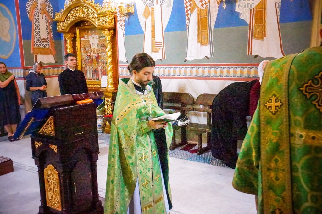 Наприкінці Літургії перед іконами святих преподобних Сергія Радонезького і Афанасія Афонського був звершений чин славління.