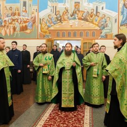 Богослужбові піснеспіви виконував академічний хор студентів Київських духовних шкіл.