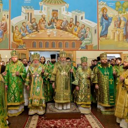 Його Блаженству співслужили: голова Відділу зовнішніх церковних зв’язків УПЦ митрополит Чернівецький і Буковинський Мелетій, голова Учбового комітету при Священному Синоді Української Православної Церкви митрополит Ніжинський і Прилуцький Климент, митрополит Тульчинський і Брацлавський Сергій, ректор Київської духовної академії і семінарії архієпископ Білогородський Сильвестр, проректор з виховної роботи архієпископ Згурівський Амвросій, архієпископ Бородянський Марк, архієпископ Бишівський Кирил, проректор з навчально-методичної роботи єпископ Батуринський Пантелеімон, завідувач аспірантури єпископ Баришівський Філарет, члени адміністрації, викладачі, співробітники, студенти Київських духовних шкіл та гості у священному сані.