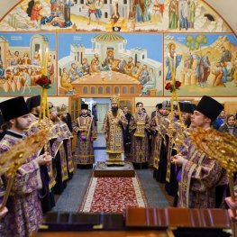 Богослужіння очолив проректор з навчально-методичної роботи єпископ Батуринський Пантелеімон у співслужінні викладачів та студентів КДАіС у священному сані.