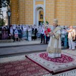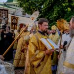 Наприкінці Літургі Блаженніший владика привітав паству зі святом, після чого архіпастирі, священнослужителі та віряни на чолі з Предстоятелем вирушили хресним ходом до Дальніх печер Лаври, де було звершено молебень святому рівноапостольному князю Володимиру, а вірян окропили святою водою.