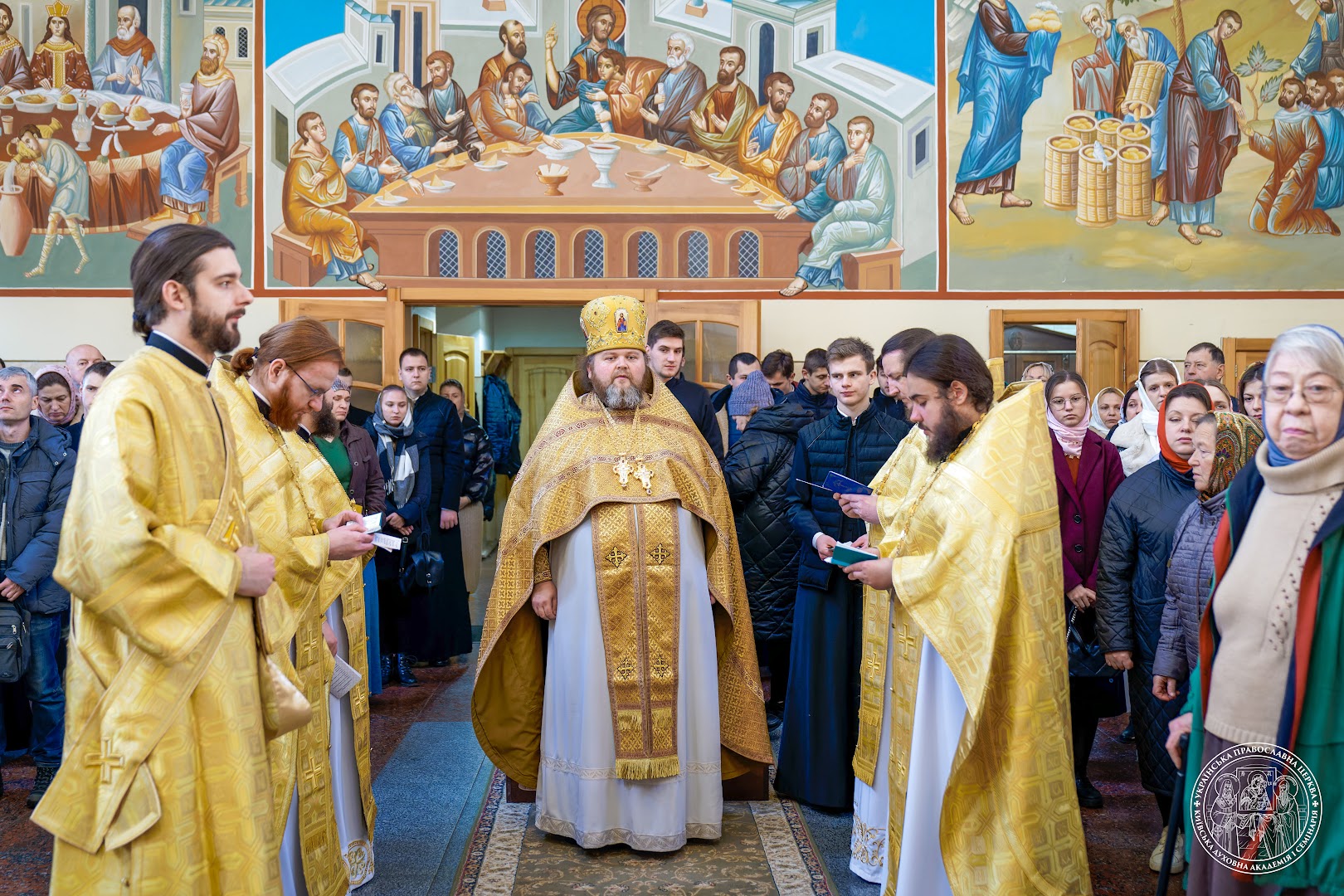 Богослужіння очолив благочинний Академічного храму архімандрит Досифей (Михайлюк) у співслужінні академічного духовенства та студентів Київських духовних шкіл у священному сані.