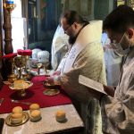 На сугубій єктенії були виголошені прохання за позбавлення від коронавірусної інфекції та за здоров’я лікарів.