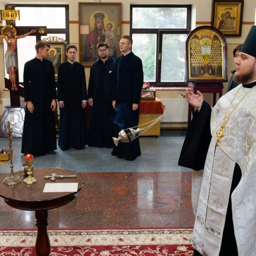 Проповіді за богослужінням виголосили: після читання Святого Євангелія — викладач КДАіС ієромонах Павел (Вітрюк), а на запричасному вірші — студент IІ курсу Академії чтець Семен Опанасюк