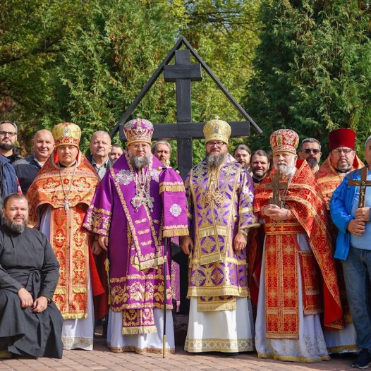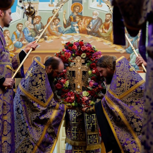 Наприкінці богослужіння на середині храму під спів тропаря, кондака свята, а також піснеспіву “Кресту Твоему” духовенство вклонилося Чесному Древу Хреста Господнього. Після чого архімандрит Митрофан привітав присутніх зі святом