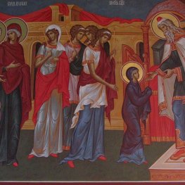 И все же попытаемся ответить, есть ли историческое основание для сегодняшнего праздника. Обратившись уже к Новому Завету, вспомним всем известную историю, когда Господа нашего Иисуса Христа на сороковой день после рождения принесли в Иерусалимский храм. В этом евангельском событии есть одна деталь. Там упоминается пророчица, которая, как сказано в Писании: «вдова лет восьмидесяти четырех, которая не отходила от храма, постом и молитвою служа Богу день и ночь» (Лк.2:37). Очевидно, что иудейское благочестие того времени все же предполагало, что некоторые женщины могли постоянно присутствовать при храме. Потому благочестивые родители могли и дитя женского рода привести в храм, для приобретения благочестивого навыка поста и молитвы.