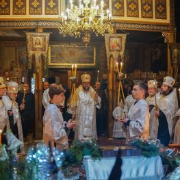 Його Високопреосвященству співслужив настоятель храму та благочинний Голосіївського благочиння міста Києва протоієрей Павло Кирилов, духовенство храму та гості у священному сані.