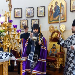 Богослужіння очолив проректор з навчально-методичної роботи єпископ Пантелеімон (Мельник) у співслужінні викладачів та студентів Київських духовних шкіл у священному сані.
