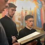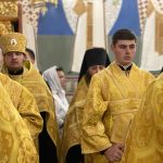 Його Високопреосвященству співслужили: ректор Київської духовної академії і семінарії єпископ Білогородський Сильвестр, проректор з виховної роботи єпископ Згурівський Амвросій, члени адміністрації, викладачі і студенти Київських духовних шкіл у священному сані.