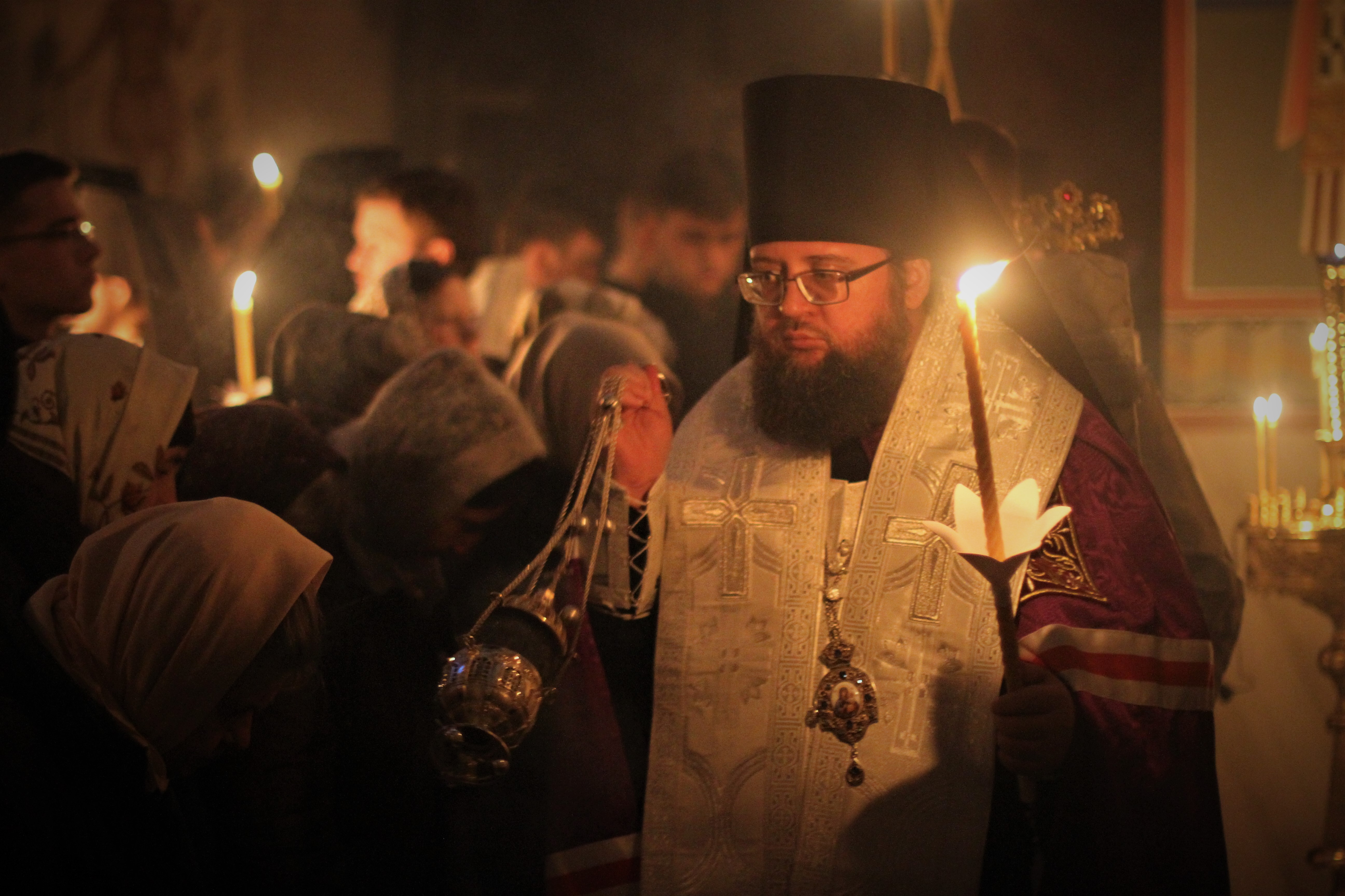 Ректор Київської духовної академії і семінарії єпископ Білогородський Сильвестр молився за Вечірнім богослужінням та взяв участь у вітанні Блаженнішого Митрополита Онуфрія з Різдвом Христовим в Києво-Печерській Лаврі.